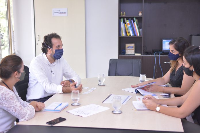 O empresário foi recebido pela diretora da Indústria, Comércio e Serviços, Geanny Pinheiro, diretora de Atração de Investimento, Elaine de Assis e a secretária executiva do Conselho de Desenvolvimento Econômico (CDE), Kátia Milhomem, acompanhada por técnicos da pasta.