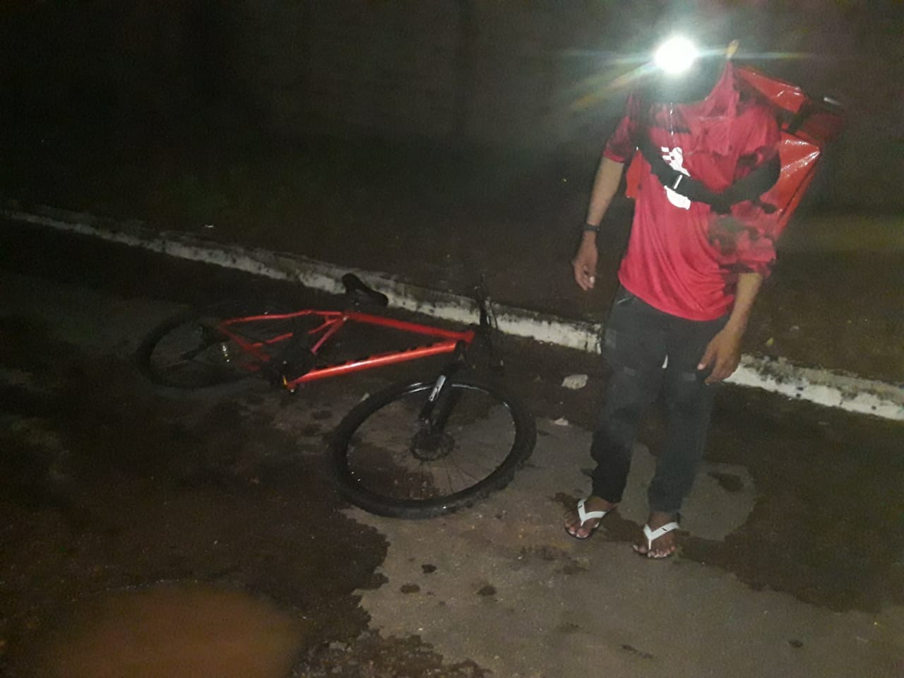 “Eu estava indo coletar um pedido no estabelecimento. Fui passar por uma rua e não tinha iluminação. Não conseguia ver o buraco porque estava coberto de água. Eram impossíel enxergar. Eu fui arremessado a meio metro de distância da bicicleta e do buraco e caí com o rosto no asfalto”, contou.