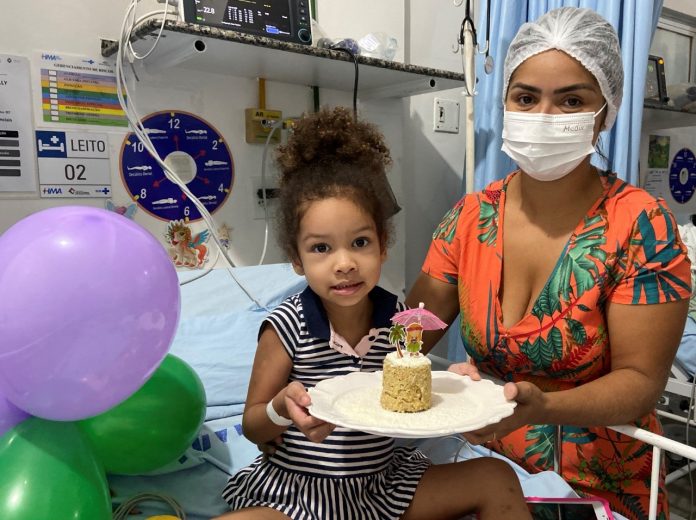 A equipe de saúde do Hospital Municipal de Araguaína preparou uma surpresa especial para uma paciente internada com diabetes. A pequena Sophia Emanuelly Gomes Matias completou quatro anos na última semana e para comemorar os profissionais prepararam um bolo especial, sem açúcar, e uma festa surpresa.