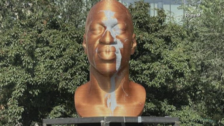 Uma estátua erguida em homenagem a George Floyd na cidade de Nova York foi vandalizada no domingo (3), informaram as autoridades americanas.