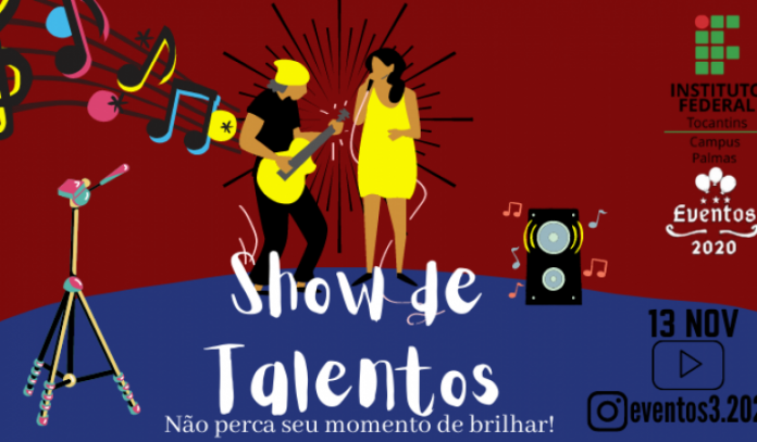 Um momento de lazer e descontração. Essa é a proposta da turma do 3º ano do Curso de Eventos Integrado ao Ensino Médio, do Campus Palmas/IFTO, que promove no dia 13 de novembro o Show de Talentos: não perca seu momento de brilhar! O evento é aberto ao público em geral e será transmitido totalmente online, através de uma live pelo YouTube. Os três primeiros colocados no Show de Talentos serão premiados.