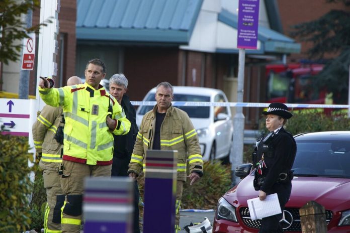 Agentes do lado de fora do hospital de Liverpool onde houve uma explosão, em 14 de novembro de 2021
