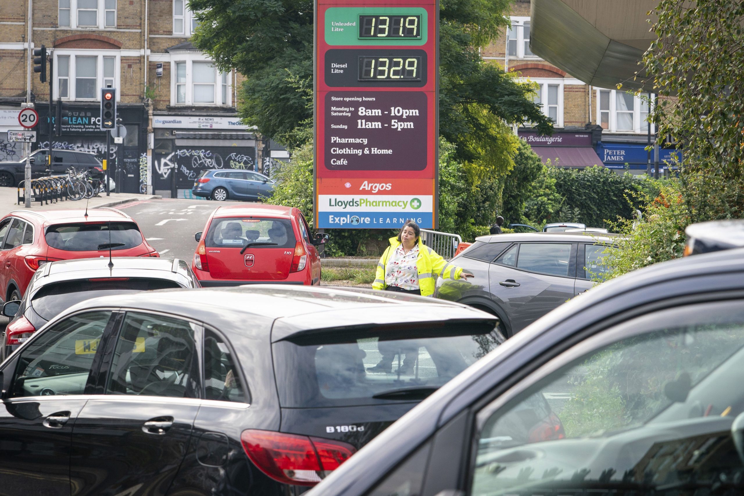 Posto de gasolina em Leicester, na Inglaterra, teve longas filas no sábado (25)