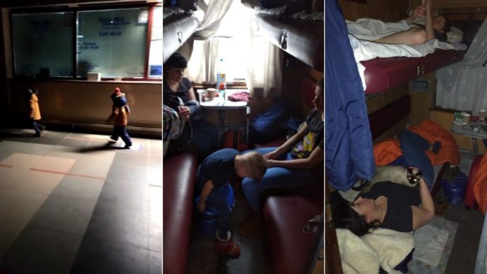 “Quando chegamos na plataforma, em toda a estação as luzes estavam apagadas, por segurança, para não chamar a atenção dos aviões militares. A gente ficou duas horas esperando o trem. Quando fomos não tinha tanta gente, porque ontem por exemplo, tinham muitas pessoas e ocorreram brigas para entrar e foi preciso chamar a polícia. Conseguimos embarcar e por muita sorte nós recebemos um quarto de trem”, disse.