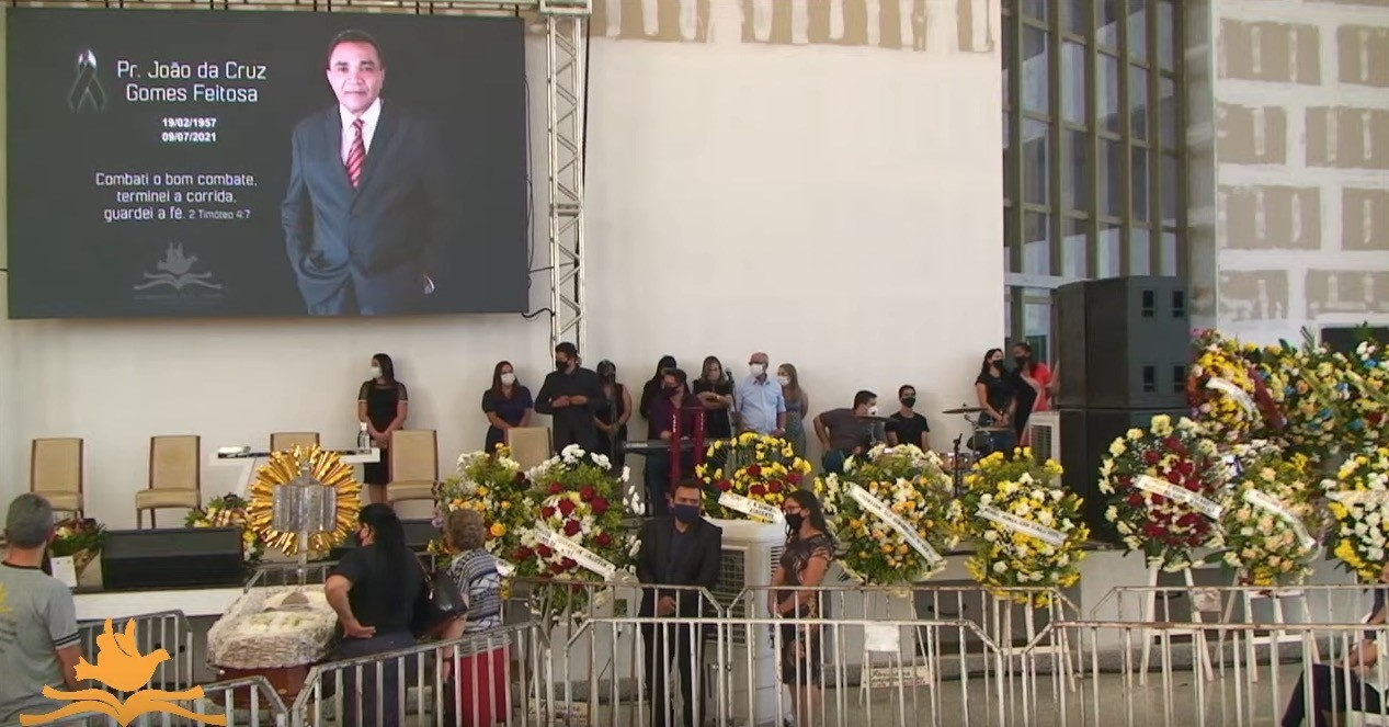 Na tarde deste sábado (10), fiéis fazem homenagens e se despedem do pastor da Assembleia de Deus de Gurupi, João da Cruz Gomes Feitosa, de 64 anos, que morreu após complicações causadas pela Covid-19. O velório, transmitido pela internet, é acompanhado por cerca de 1,5 mil pessoas, simultaneamente.