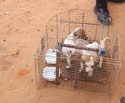 Filhotes de cachorro são encontrados presos em gaiola de passarinhos após denúncia de maus-tratos