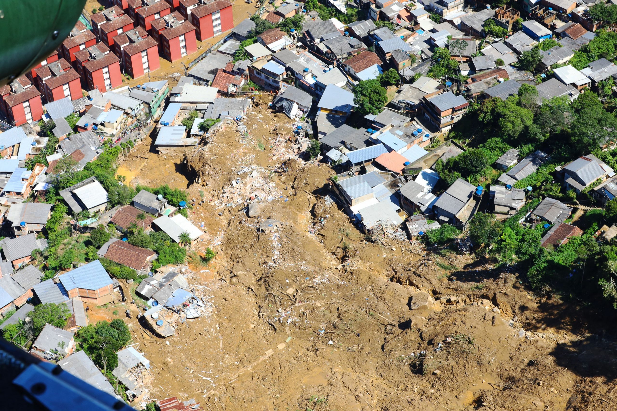 Há risco de muita chuva em Mato Grosso, Goiás, Distrito Federal, Minas Gerais, Rio de Janeiro e Espírito Santo. Como o solo está encharcado em Minas e no Rio, com alto nível dos rios, há risco de mais deslizamentos e enchentes. Foto divulgada pela Presidência mostra vista aérea após o deslizamento de terra em Petrópolis (RJ), em 18 de fevereiro.