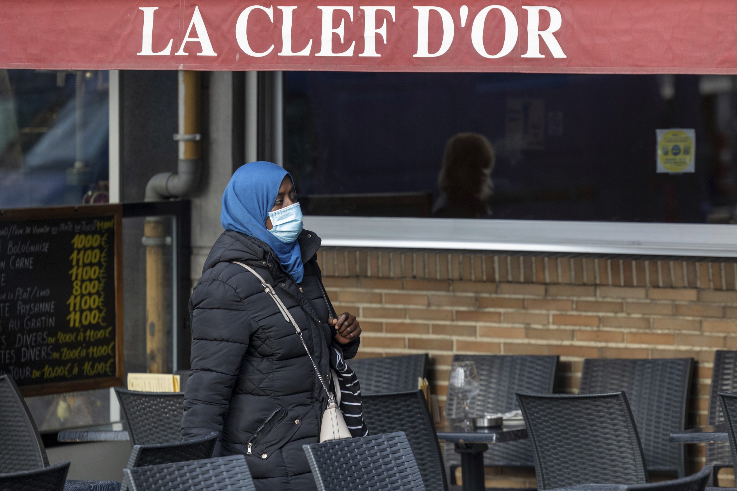 Em boletim extraordinário, fundação lembrou que, apesar de o Brasil ter cerca de 60% da população totalmente vacinada, países europeus com índices na mesma faixa vêm registrando aumento de internações – principalmente entre os não vacinados – e de óbitos. Mulher usa máscara para se proteger contra o coronavírus ao passar por um terraço vazio no bairro de Marrolles em Bruxelas, na Bélgica, na quarta-feira (17).