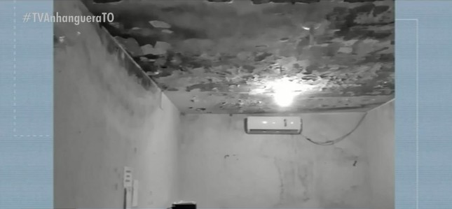 Nas imagens feitas pela fiscalização é possível ver o teto com infiltrações e descascando. Há problemas na rede elétrica, que foi parcialmente desligada por risco de curto-circuito. Quando chove os equipamentos elétricos precisam ser cobertos para evitar que fiquem molhados.