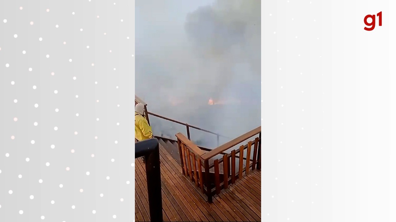 Um vídeo publicado nas redes sociais mostra o momento em que o fogo destrói a vegetação ao redor da escadaria da capela de Santa Cruz, que fica na Serra do Estrondo em Paraíso do Tocantins. Nas imagens, brigadistas aparecem fazendo o controle das chamas no meio de uma grande nuvem de fumaça preta.