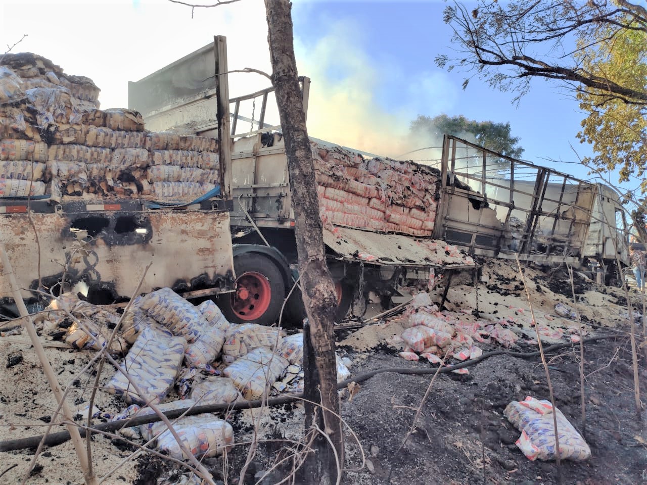 Uma carga de arroz ficou praticamente destruída após a carreta em que era transportada pegar fogo. O sinistro foi na BR-153, entre as cidades de Figueirópolis e Alvorada, na Região Sul do Tocantins, a cerca de 260km de Palmas. A ocorrência foi nesta quarta-feira, 16, às 13h.
