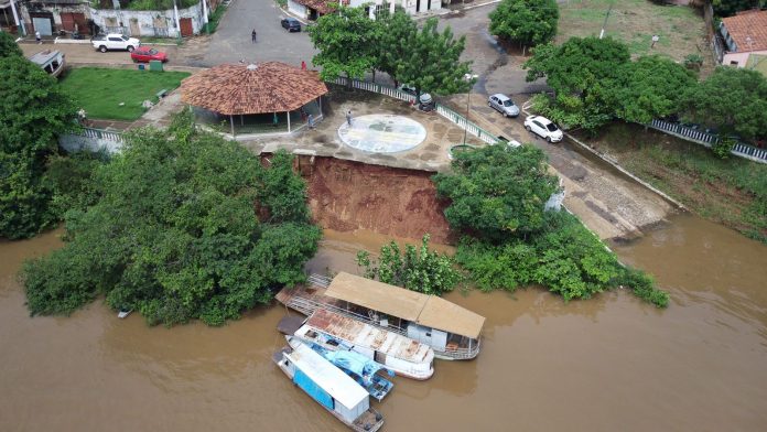 Segundo secretário municipal, erosão foi provocada após queda de árvores durante temporal. Não houve feridos. Parte do cais do porto cede após fortes chuvas em Tocantinópolis