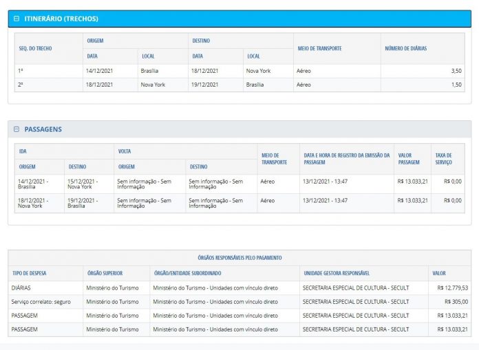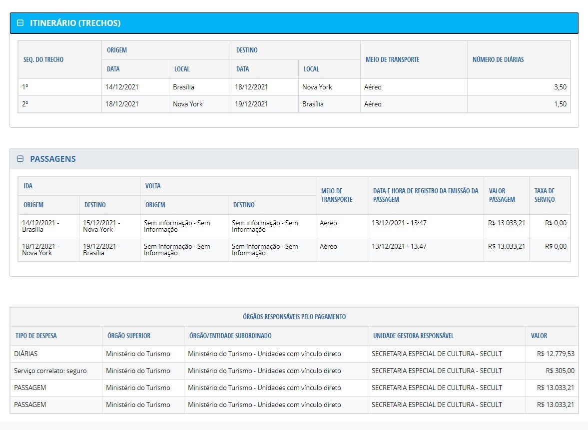Portal da Transparência indica custo da viagem do secretário Mario Frias
