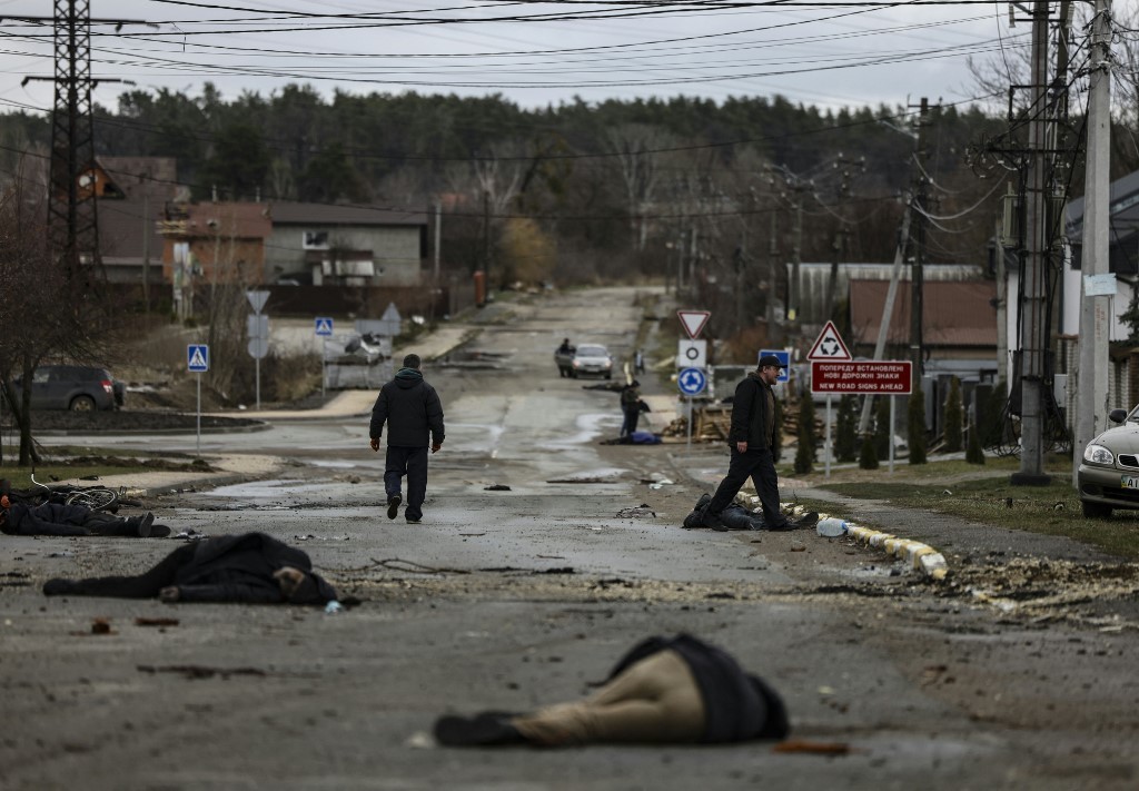 Corpos de civis nas ruas de Bucha, na Ucrânia