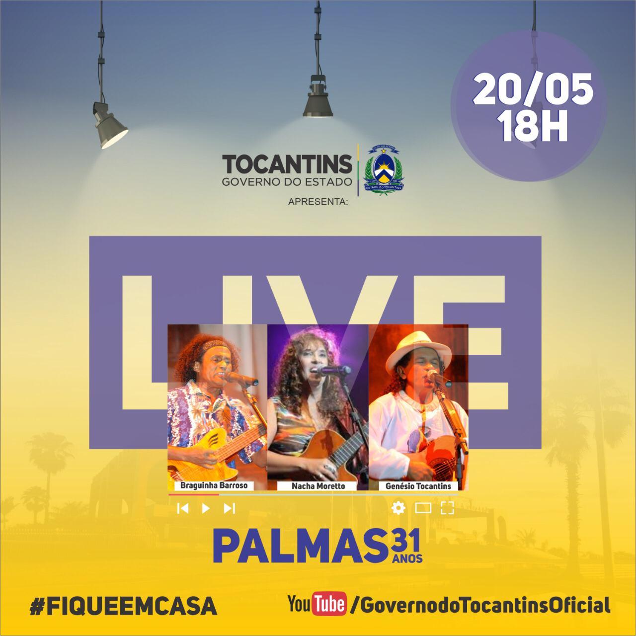 Palmas, caçula de todas as capitais do País, festeja seus 31 anos nesta quarta, 20 de maio. Para prestar sua homenagem, o Governo do Estado, por meio da Agência do Desenvolvimento do Turismo, Cultura e Economia Criativa (Adetuc), realizará uma ‘live’ com três representantes da música tocantinense: Braguinha Barroso, Nacha Moretto e Genésio Tocantins. O show será transmitido ao vivo, a partir das 18 horas, pelas redes sociais do Governo, Instagran e Youtube, além da rádio 96 FM Unitins, diretamente do auditório do Memorial Coluna Prestes.