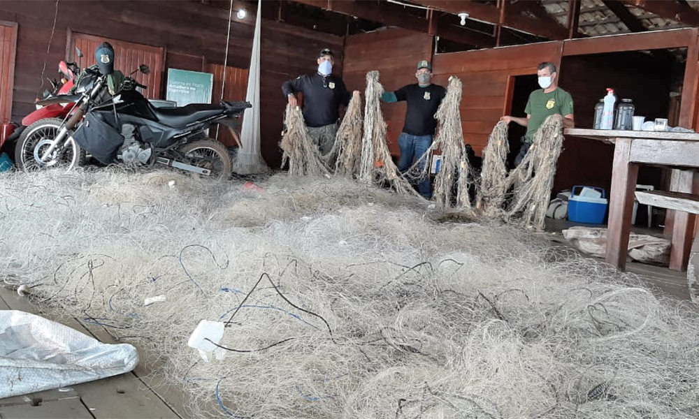 Foram apreendidos cerca de 20 mil metros de redes e lavrados autos de infração por crime ambiental