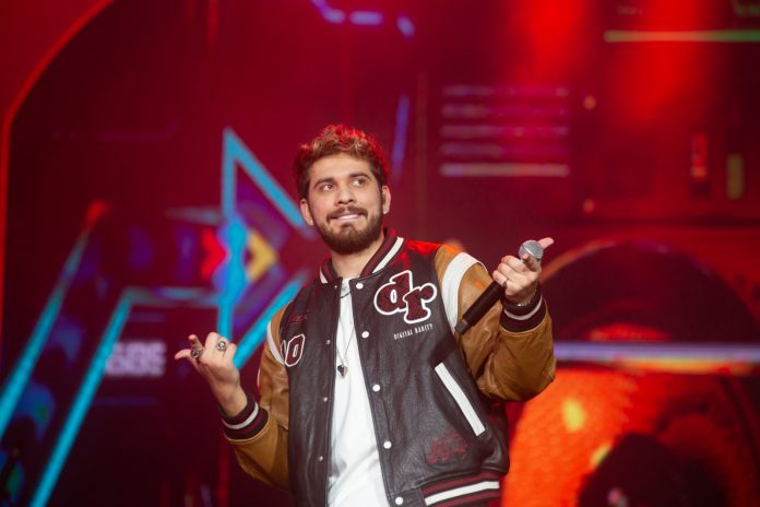 O cantor paulista está completando dez anos de carreira. E o repertório escolhido para o show especial na arena empolgou. Ele abriu com “Solteiro Não Trai”, do álbum “Ao Vivo em Fortaleza” (2020).