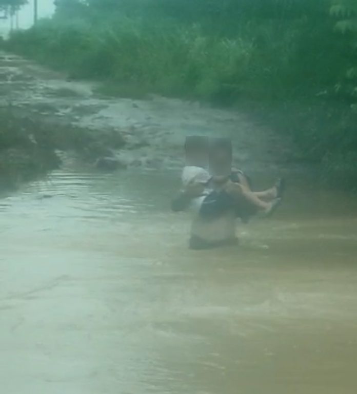 Toda vez que o tempo fecha algumas famílias que vivem próximo ao córrego Cipó em um trecho rural do Santa Fé, na região sul de Palmas, se preocupam com o risco de ficarem isoladas. Nesta quarta-feira (2), após a manhã chuvosa, o local ficou intransitável e uma criança precisou ser carregada no colo para atravessar o trecho após a saída da escola.