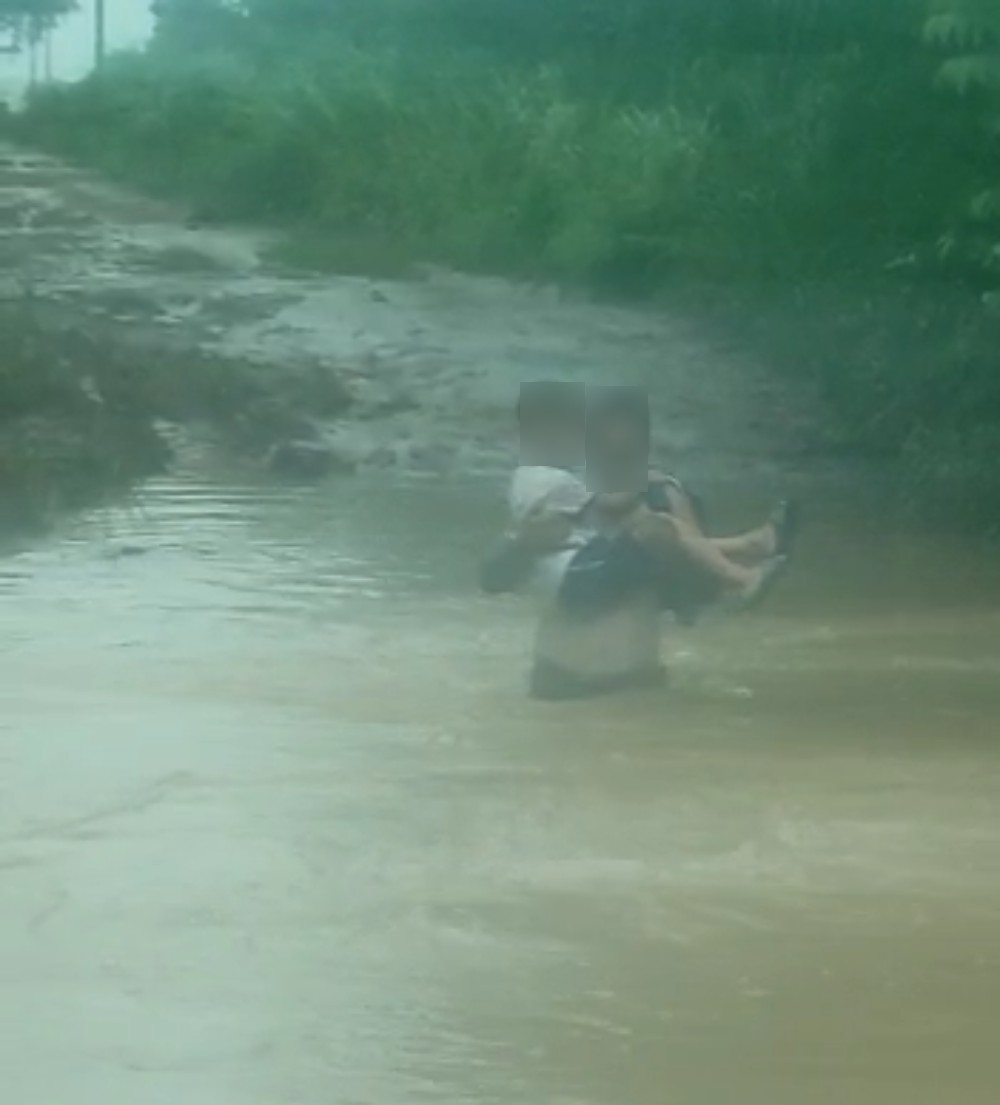 A Marcilene Martins Teixeira, de 33 anos, vive no local há quatro anos e conta que toda vez que chove a situação se repete. Um vídeo que circula nas redes sociais mostra o filho dela, de quatro anos, sendo carregado por um parente durante a travessia. A água chega até a cintura do homem.