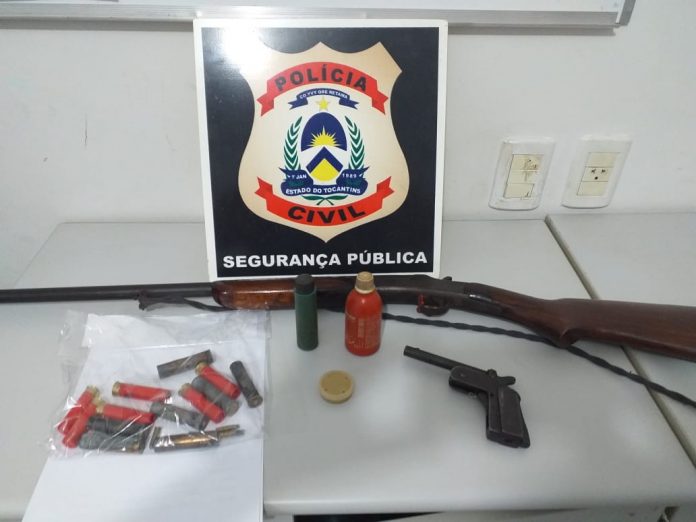 Durante o cumprimento do mandado de prisão, os policiais encontraram e aprenderam em poder idoso de 62 anos duas armas de fogo municiadas, sendo uma espingarda calibre 28 e uma pistola de fabricação artesanal de calibre 22, mantidas no local da prisão sem permissão das autoridades competentes e contrariando o Estatuto do Desarmamento, acarretando também a prisão em flagrante por crime de posse irregular de arma de fogo de uso permitido. Após os procedimentos legais cabíveis, o preso foi conduzido à Casa de Prisão Provisória de Guaraí, onde ficará à disposição do Poder Judiciário.