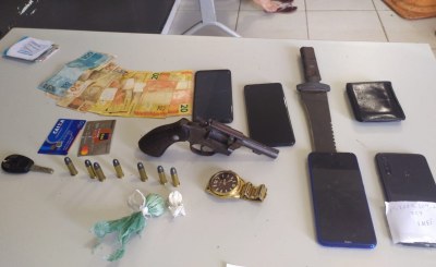 No interior do automóvel foram encontrados: um revólver calibre 38, com sete munições intactas, R$ 360 em espécie, duas porções de substância semelhante à cocaína, e quatro aparelhos celulares de procedência criminosa. O indivíduo foi conduzido para a delegacia, juntamente com os produtos apreendidos, sendo preso em flagrante pela prática dos crimes de posse ilegal de arma de fogo e posse de entorpecentes.