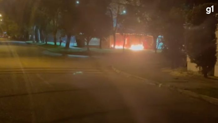 Nas imagens é possível ver um homem pegando o colchão e arrastando para fora da cobertura do quiosque. Não há informação de quem possa ter iniciado o incêndio.