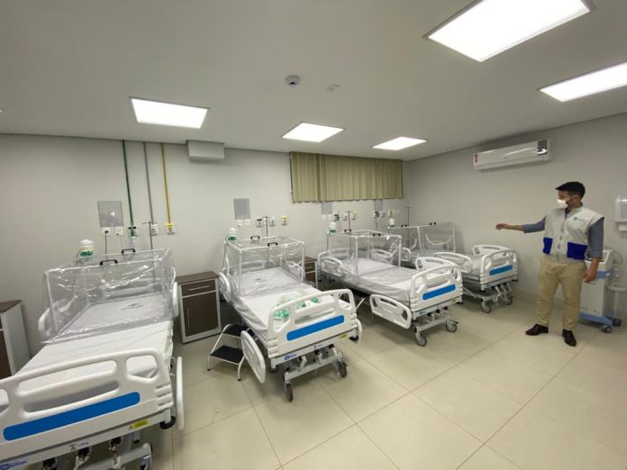 A Unidade hospitalar conta com 60 leitos clínicos e 10 leitos de UTI, destinados exclusivamente ao tratamento das pessoas acometidas pelo novo Coronavírus.