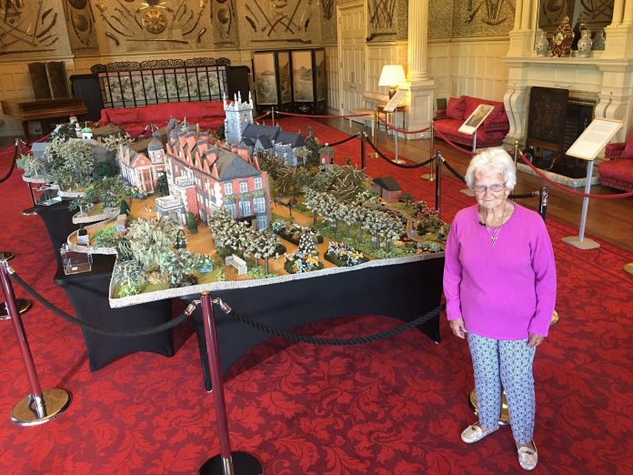 A aposentada britânica Margaret Seaman, de 92 anos, tricotou uma maquete com mais de 5 metros de comprimento de uma das casas de campo da rainha Elizabeth II.