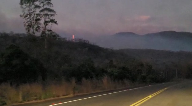 Equipes de brigadistas e bombeiros tentam combater focos de incêndio que consomem a vegetação há pelo menos duas semanas. Rastro de fogo na serra de Taquaruçu pode ser visto de longe