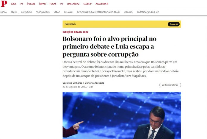 Já para o português “Público”, o presidente Jair Bolsonaro foi o “alvo principal” do debate, que destacou a discussão sobre direitos das mulheres, “área em que Bolsonaro parte em desvantagem”. A publicação portuguesa afirmou ainda que Lula se esquivou de pergunta sobre corrupção.