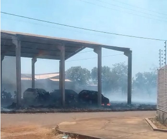 Carros e motos foram destruídos por um incêndio no início da tarde desta segunda-feira (29) em Luzimangues, distrito de Porto Nacional. Os veículos estavam estacionados em um galpão que fica próximo da estação do transporte coletivo no loteamento Jardim do Lago.