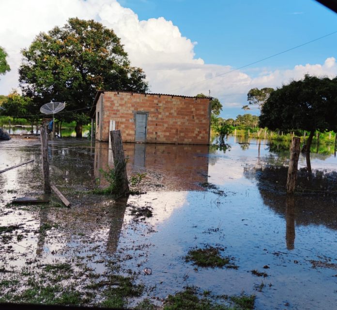 Aldeia na Iha do Bananal fica alagada após chuva forte
