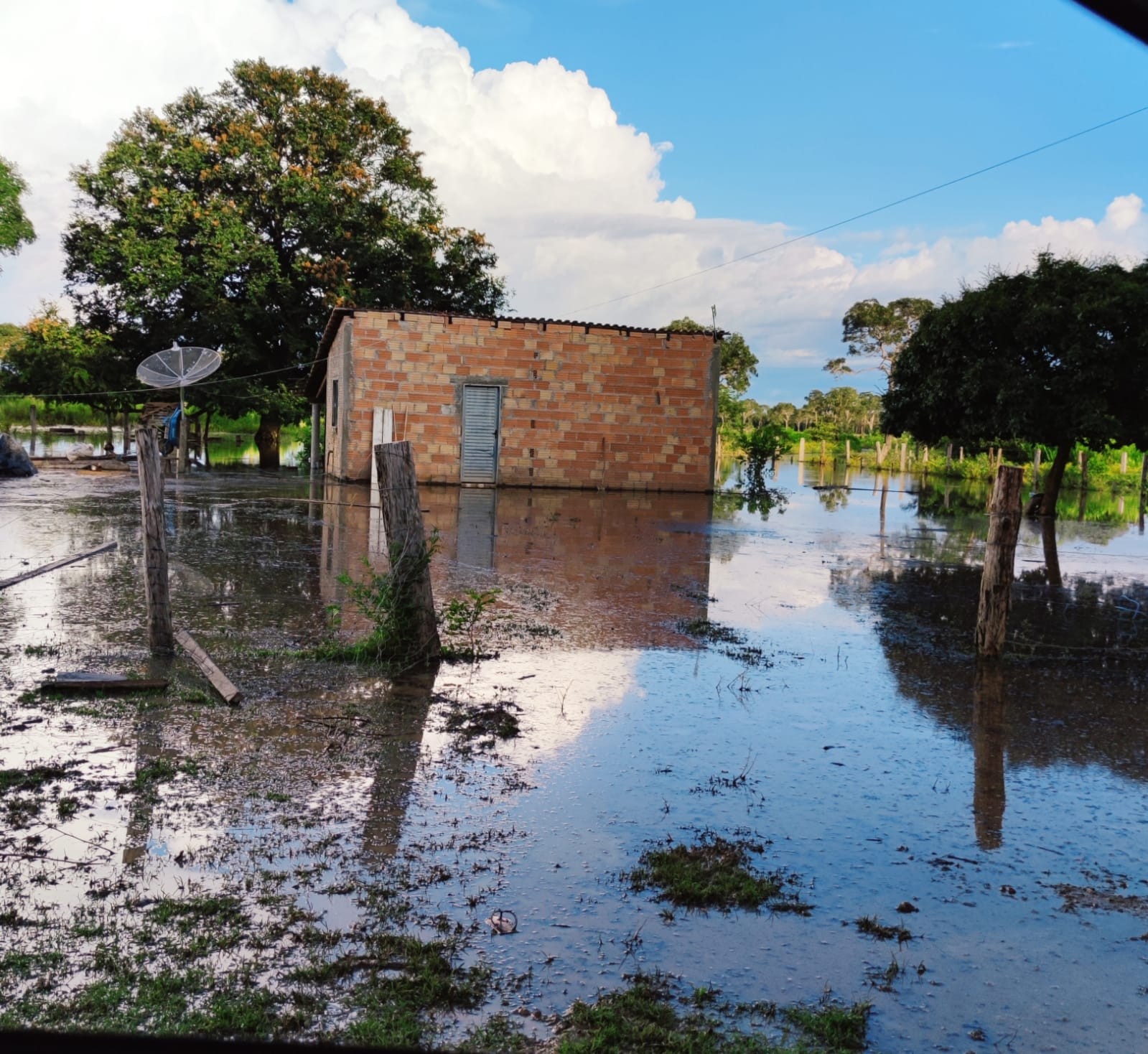 “Já é um território baixo de muito varjão. 60% da aldeia está sem energia desde terça-feira. Outra coisa, estamos sendo invadidos pela água e ao mesmo tempo, estamos sem água potável. Deu problema no quadro da água tratada. Estamos ilhados”.