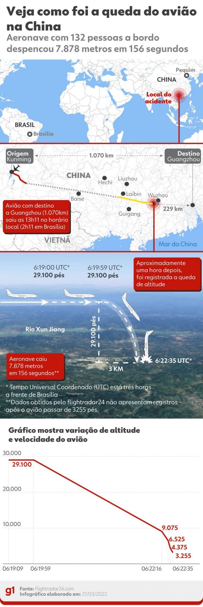 Infográfico: veja como foi a queda do avião na China 21 de março de 2022 0 231 Facebook Twitter Google+ Pinterest WhatsApp Aeronave com 132 pessoas a bordo despencou 7.878 metros em 156 segundos. Queda aconteceu em Guangxi, região montanhosa no sul da China. Veja como foi a queda do avião na China Arte g1 Fonte: G1 Mundo