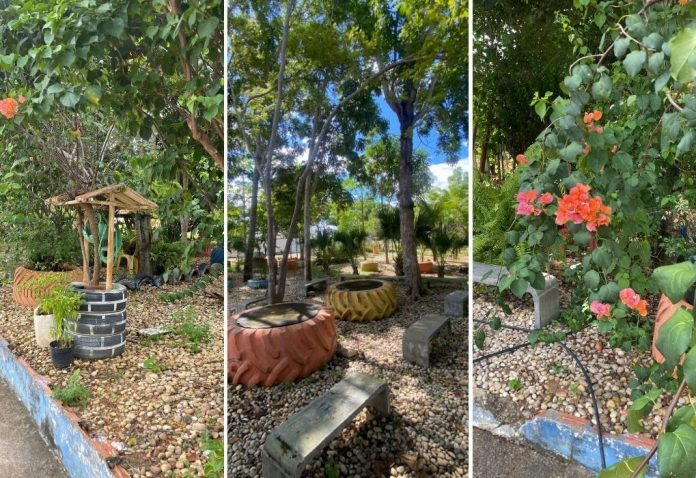 Além de servir como espaço pedagógico para que as crianças aprendam sobre consciência ambiental, o local também é um exemplo de reutilização de materiais reciclados em espaço público.