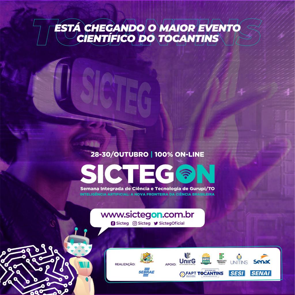 Considerado o maior evento científico da região sul do Estado, a 6ª Semana Integrada de Ciência e Tecnologia de Gurupi (Sicteg) traz uma plataforma inovadora de acesso 100% digital onde a instituição participante terá um espaço específico para apresentação de projetos e ações de interesse público. Totalmente gratuito, o evento é promovido pelo Programa Inova Gurupi e será realizado entre 28 a 30 de outubro. Conta com apoio de diversas instituições públicas e privadas e inclusive do Governo do Estado por meio da Fundação de Amparo à Pesquisa do Tocantins (Fapt).