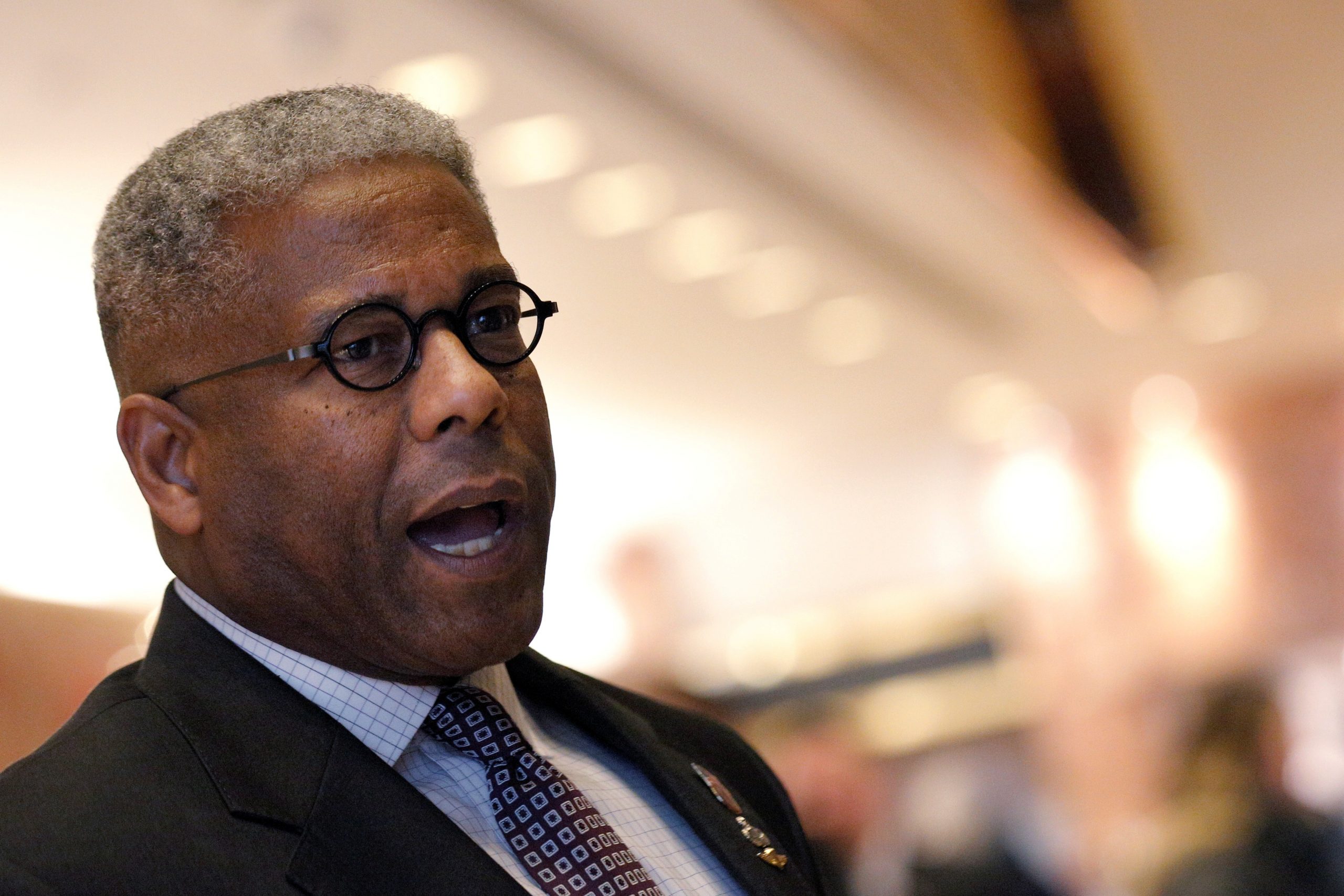 Ex-deputado por um mandato pela Flórida, ele agora faz campanha para vencer o governador republicano do Texas, Greg Abbott, em 2022. O ex-congressista dos EUA Allen West fala à imprensa na Trump Tower em Manhattan, Nova York, EUA, em dezembro de 2016.