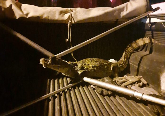 Uma mulher que andava na avenida Perimetral, por volta das 2 horas, viu o animal e avisou para o Corpo de Bombeiros. Ela contou ao órgão que tomou um susto quando viu o jacaré no local.