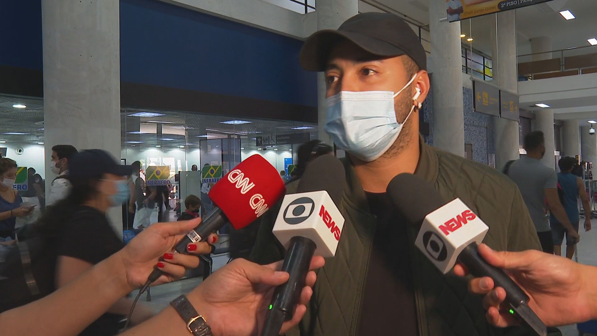 Jean Carlos, jogador de futsal do Detrading, desembarcou no Aeroporto Santos Dumont, no Centro do Rio, na tarde deste sábado (5). Ele é carioca, mas estava na cidade de Slaviansky, na Ucrânia.