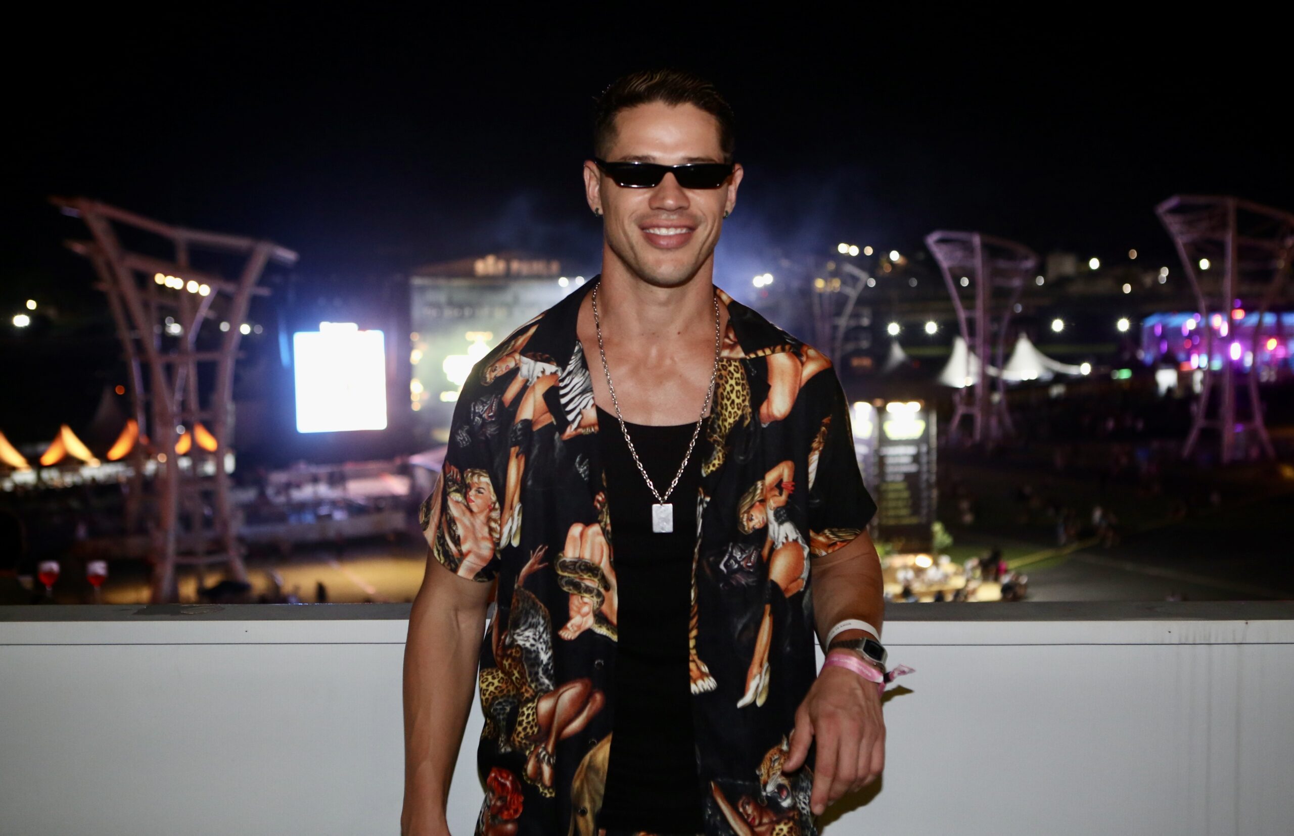 José Loreto escolheu um conjunto estampado por cima de uma camiseta preta para curtir o Primavera Sound 2023 neste sábado (2).