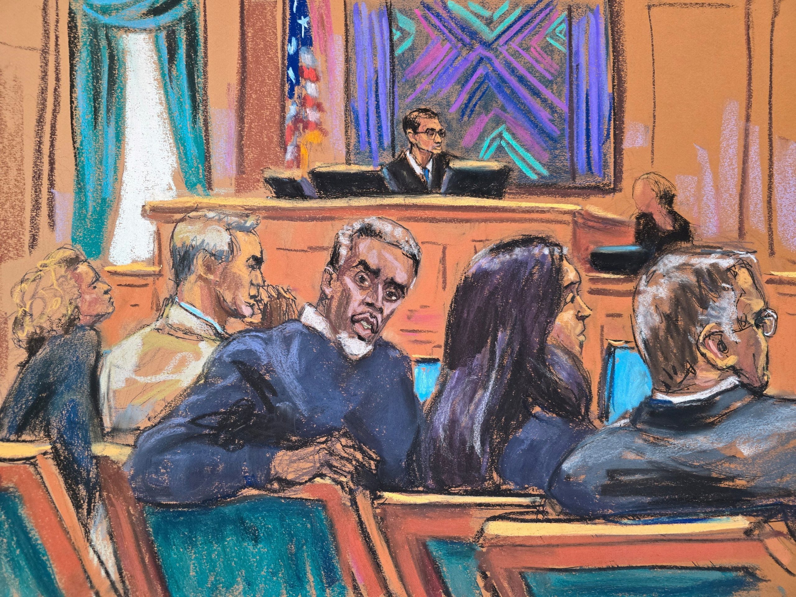 Segundo a Associated Press, Combs, vestindo um suéter branco, entrou no tribunal nesta segunda antes das 9h, abraçou os advogados e fez sinal de positivo para os apoiadores sentados nos bancos atrás dele. Mais cedo, a fila para entrar no tribunal se estendia por um quarteirão. A mãe de Combs e alguns de seus filhos foram escoltados pela multidão e levados diretamente para dentro do prédio.