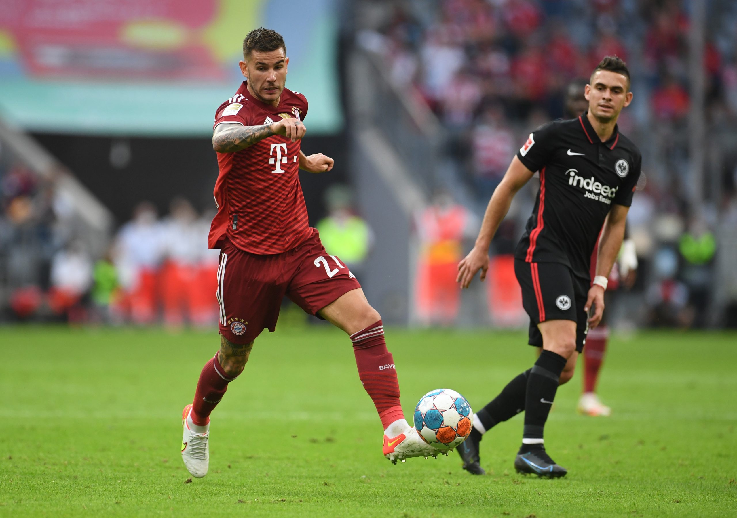Lucas Hernández, zagueiro do Bayern de Munique, foi condenado a 10 dias de prisão por descumprir uma outra ordem judicial, em um processo por violência doméstica. Lucas Hernandez, jogador do Bayern de Munique e da seleção francesa de futebol, durante jogo do Bayern de Munique contra o Eintracht Frankfurt pelo campeonato alemão, em 3 de outubro de 2021