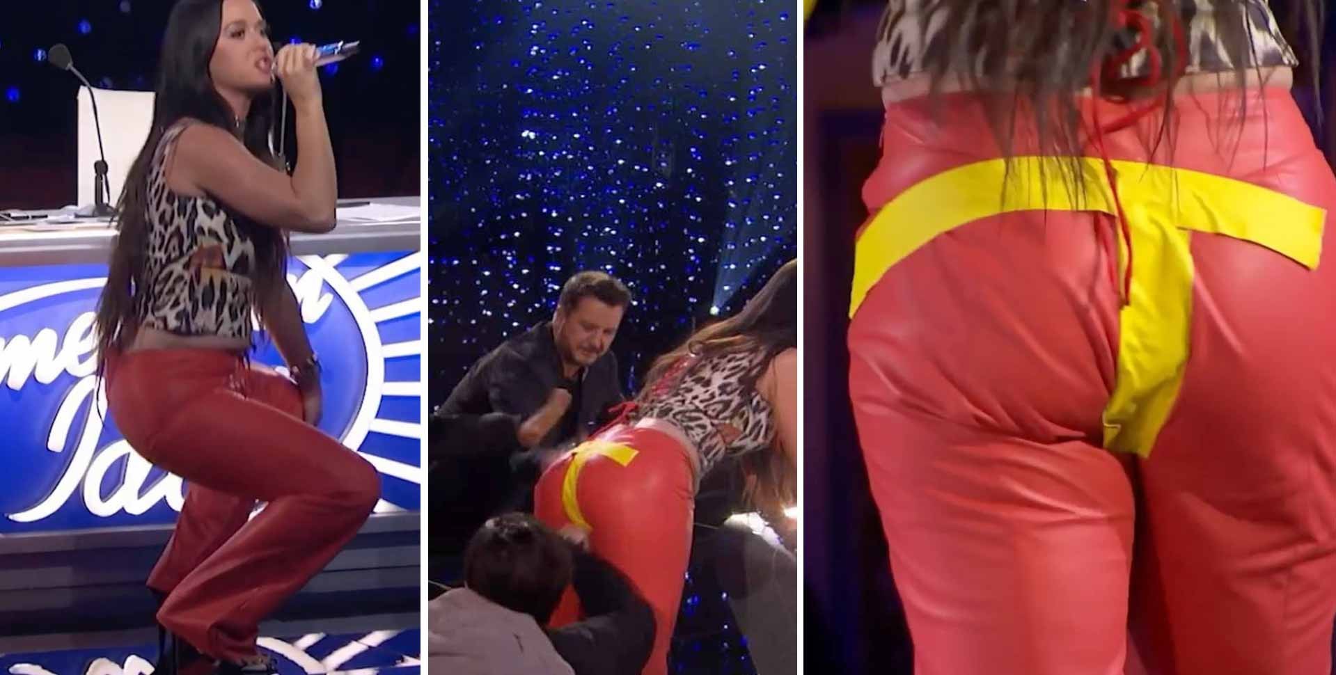A artista, que é jurada no programa, cantava “Teenage dream”, seu sucesso dos anos 2010, ao lado dos outros jurados, quando sua calça justa rasgou bem no momento em que ela descia até o chão, empolgada com o trecho da música.