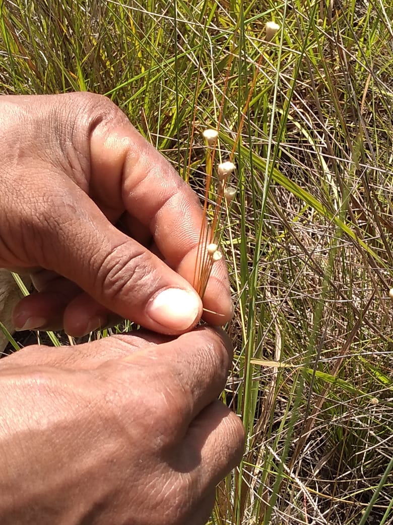 Apesar do nome, o capim-dourado (Syngonanthus nitens), a espécie é uma sempre-viva que ocorre nos campos úmidos do Cerrado brasileiro, tradicionalmente manejados com uso do fogo.  A planta é formada por uma roseta, localizada na base e rente ao solo, que produz as hastes na estação da seca, as quais estarão suscetíveis à colheita depois do dia 20 de setembro. Para confecção das peças artesanais, também é utilizada a seda do buriti (Mauritia flexuosa), produzida a partir das folhas jovens em formação.