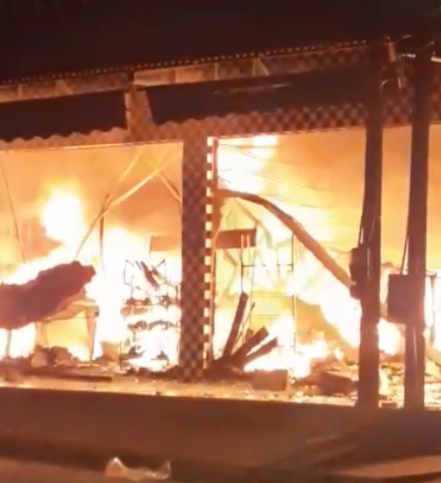 Uma loja ficou totalmente destruída após pegar fogo em Buriti, município da região do Bico do Papagaio. O incêndio começou na madrugada desta quarta-feira (29) e os bombeiros de Araguatins atuaram no combate às chamas.