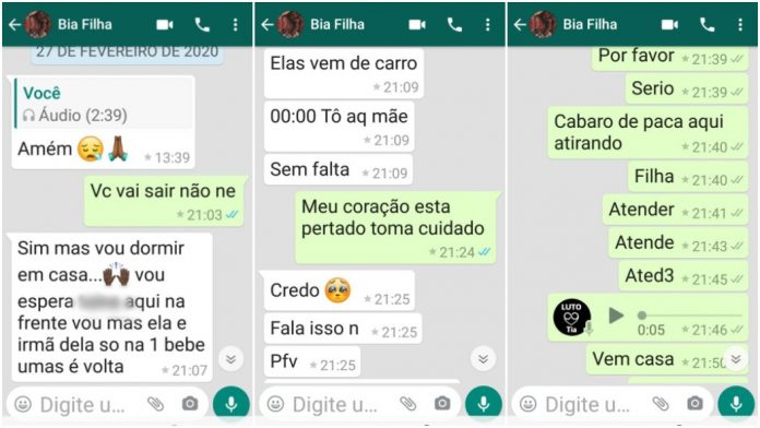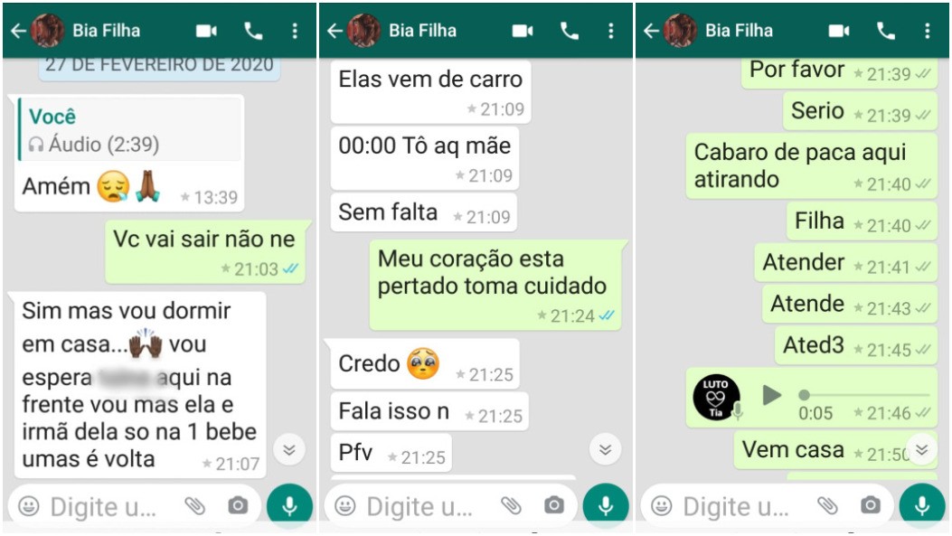Últimas mensagens trocadas entre mãe e filha