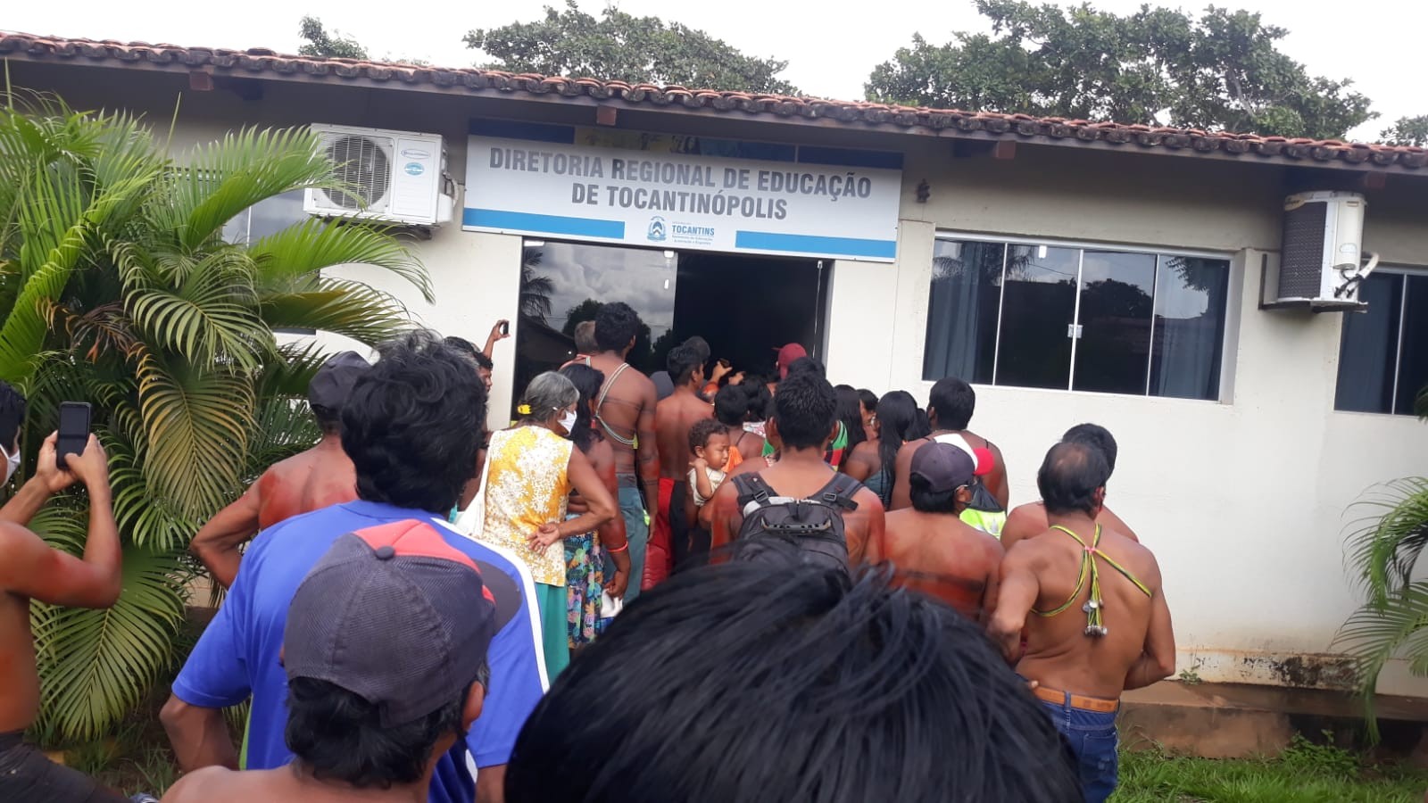 Ato foi realizado na sede da Diretoria Regional de Educação (DRE) de Tocantinópolis. Indígenas fazem protesto para pedir transporte e material escolar para estudantes