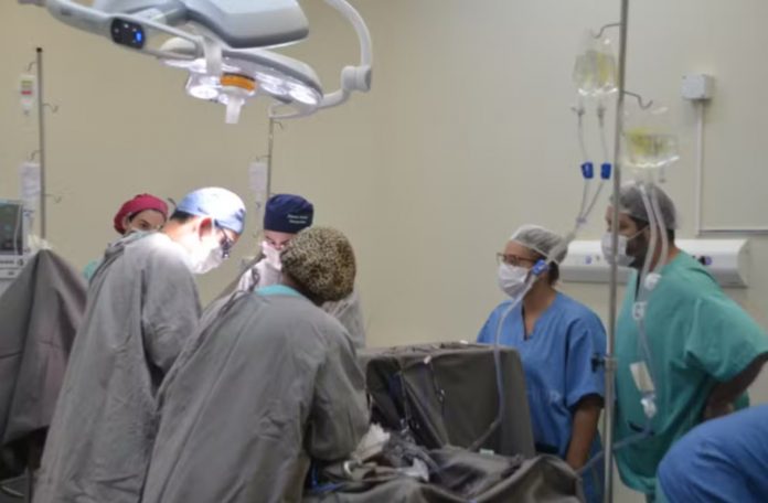 Profissionais da saúde durante procedimento no HGP