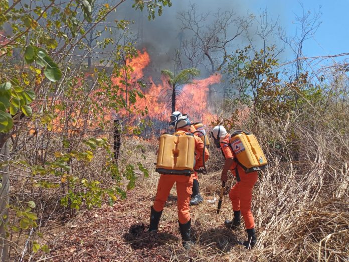 Bombeiros e moradores combatem fogo na serra de Taquaruçu há mais de 24 horas