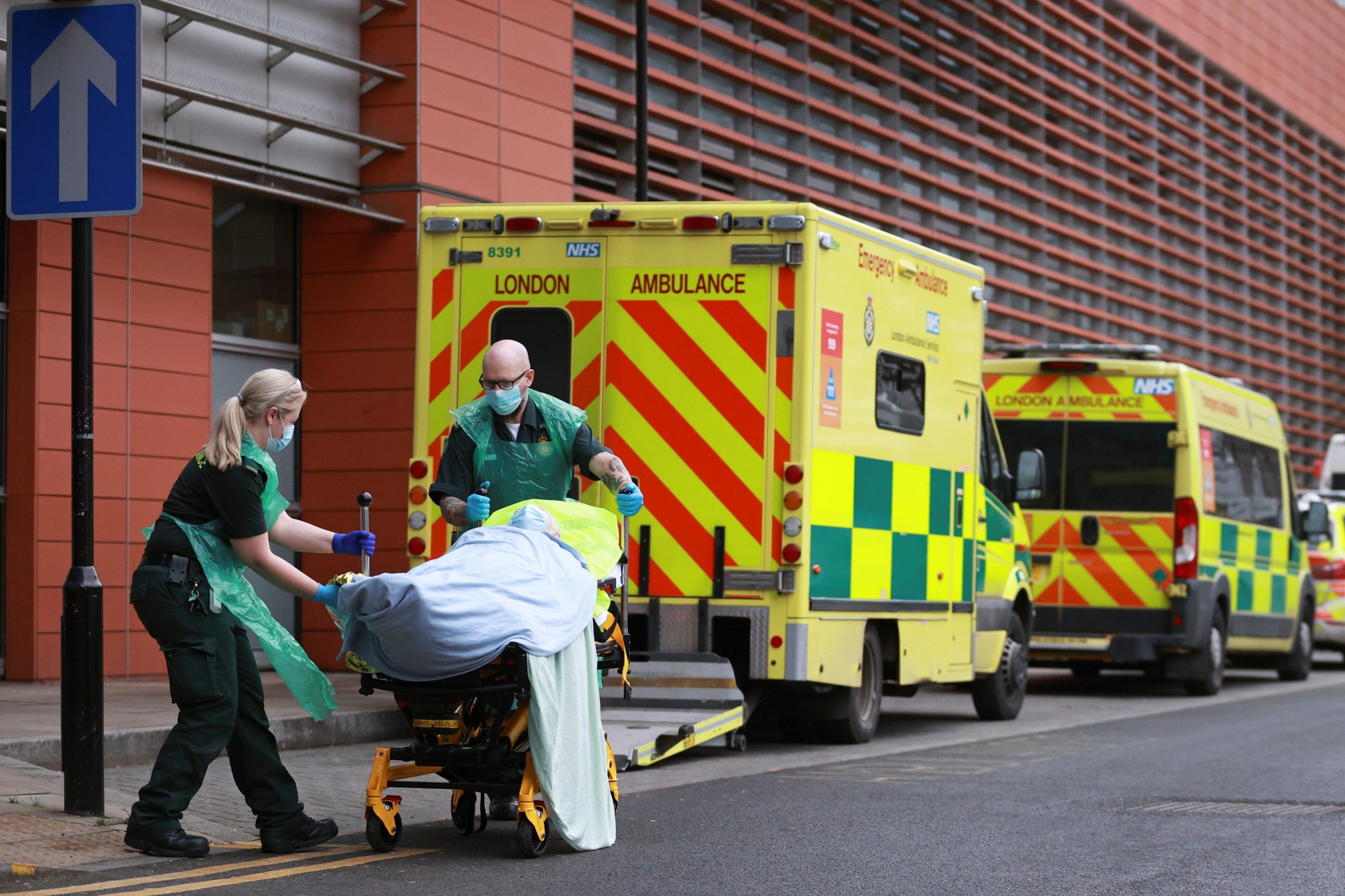 Segundo a autora do estudo, Sheila Cunliffe, a diferença não se deve à falta de candidatos. Profissionais de saúde levam paciente a hospital em Londres, no Reino Unido, nesta terça-feira (26)